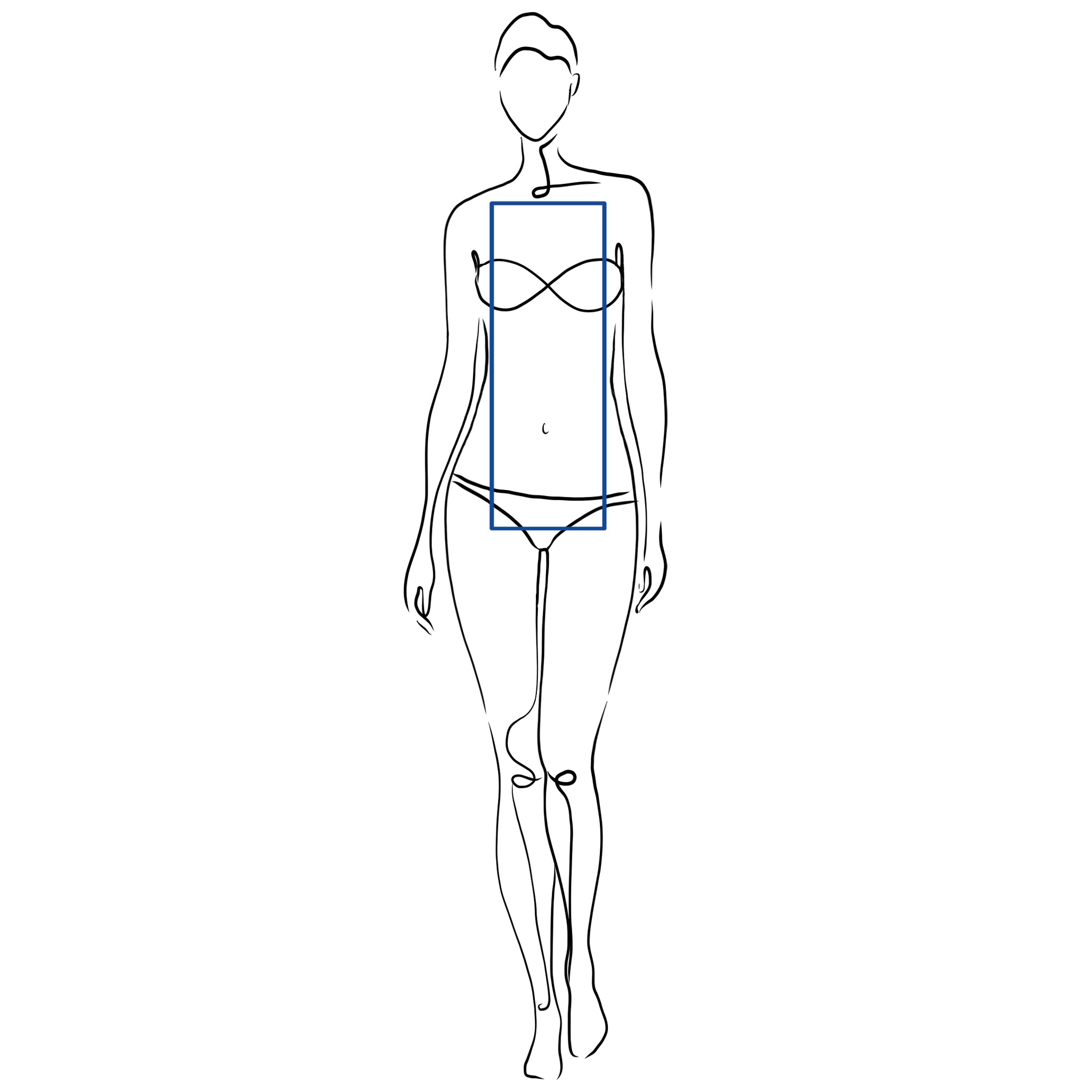 Ihre Figur zeichnet sich durch einen schmaleren Oberkörper und sanft betonte Hüften aus, oft mit klar definierter Taille.