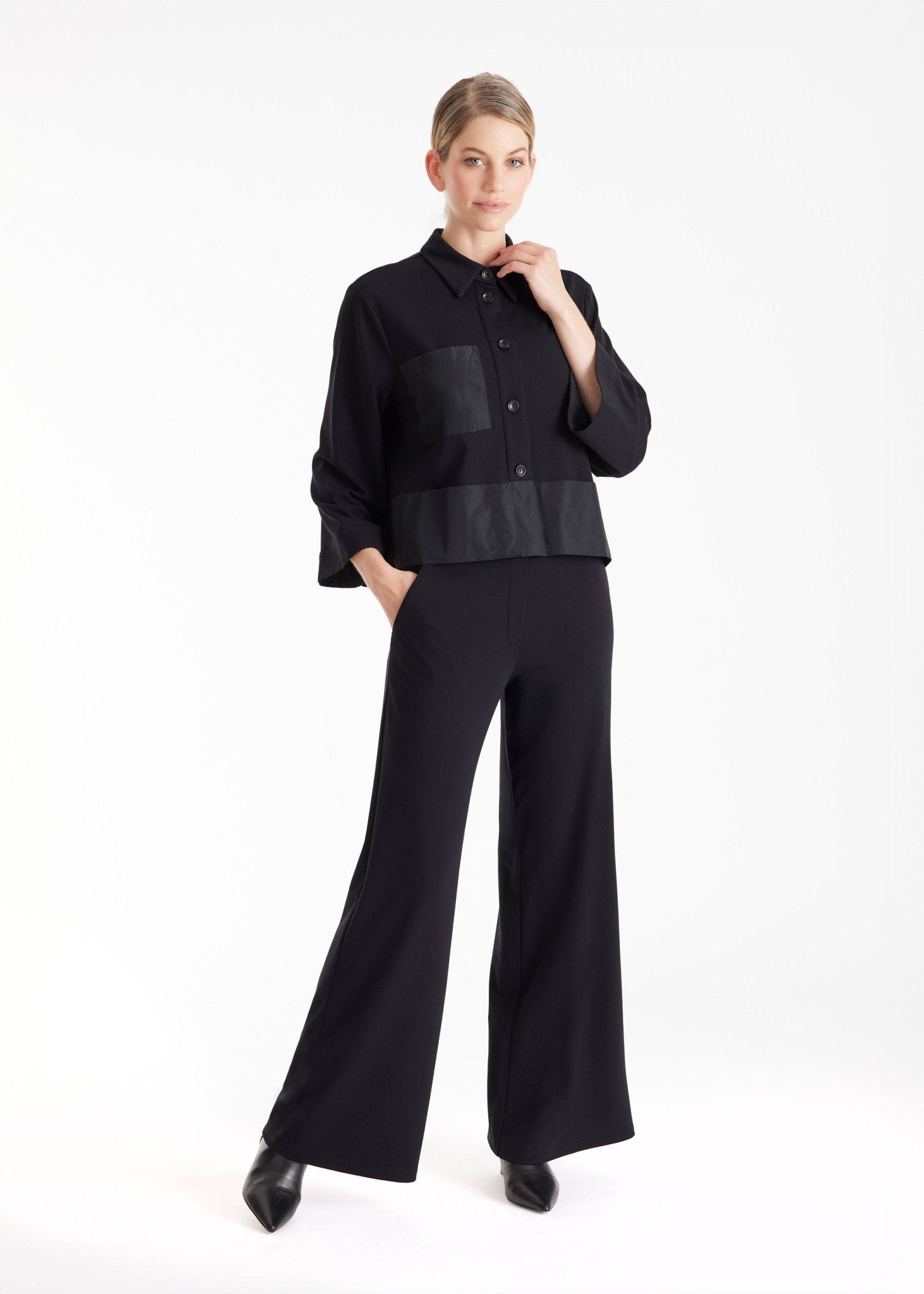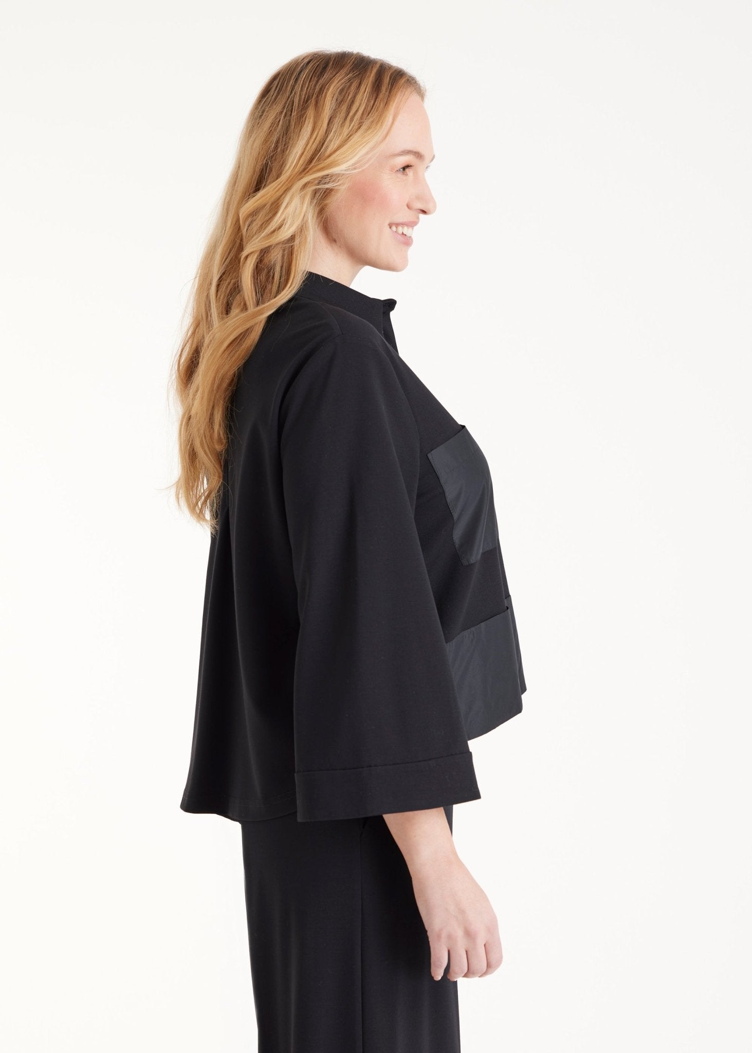 Kurze Blusenjacke GYAKI aus Viskose-Stretch und Taft