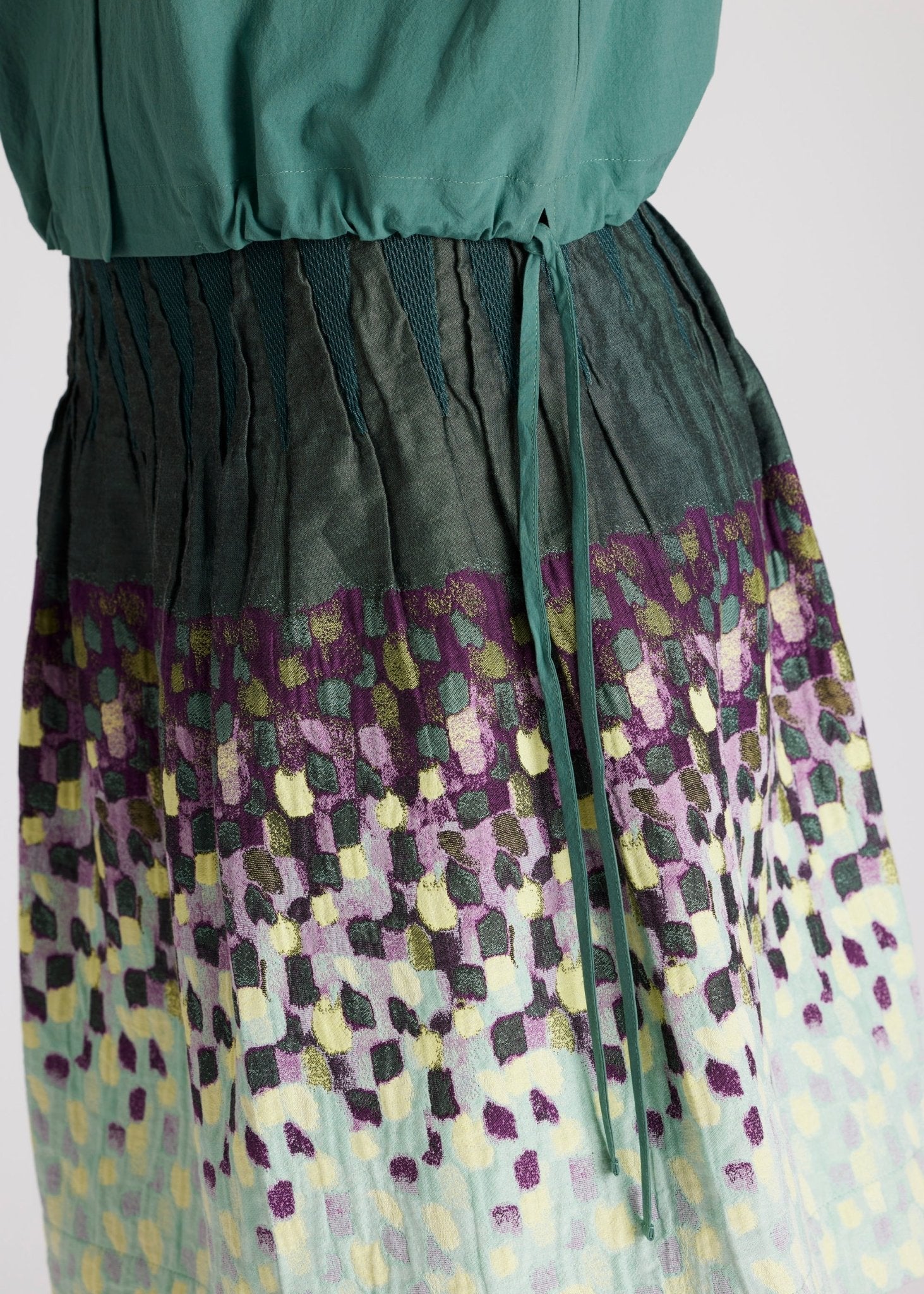 - Trekkoord in de zoom en decoratieve plooi aan de voorkant