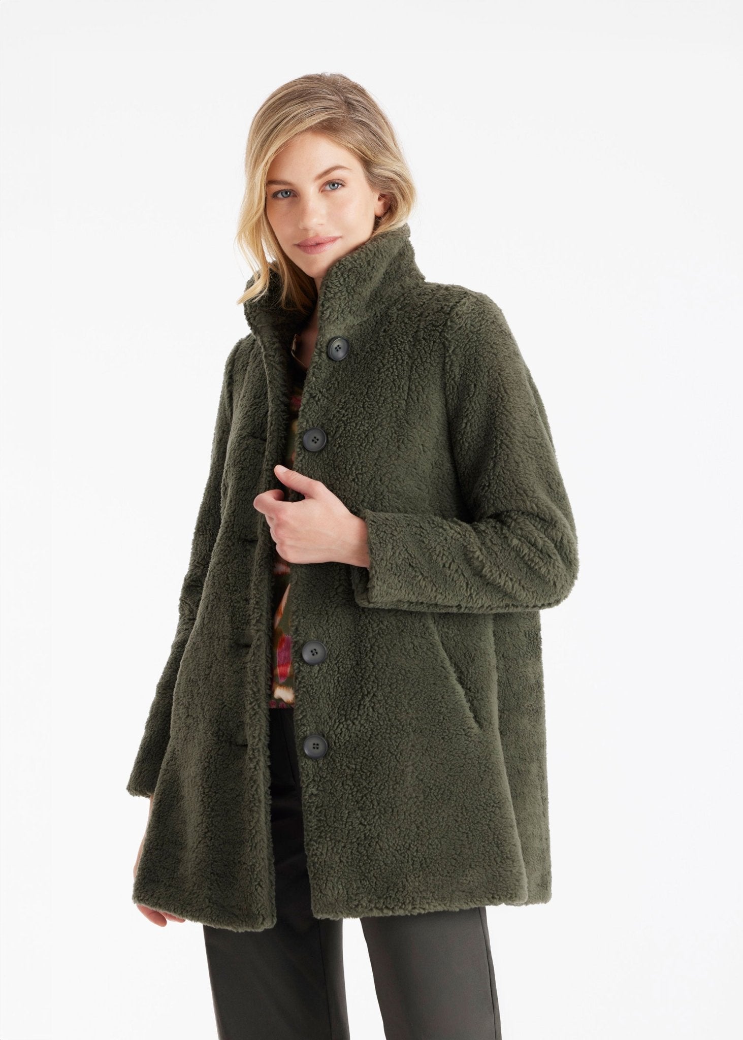 Korte A-lijn jas WUANOY gemaakt van teddystof