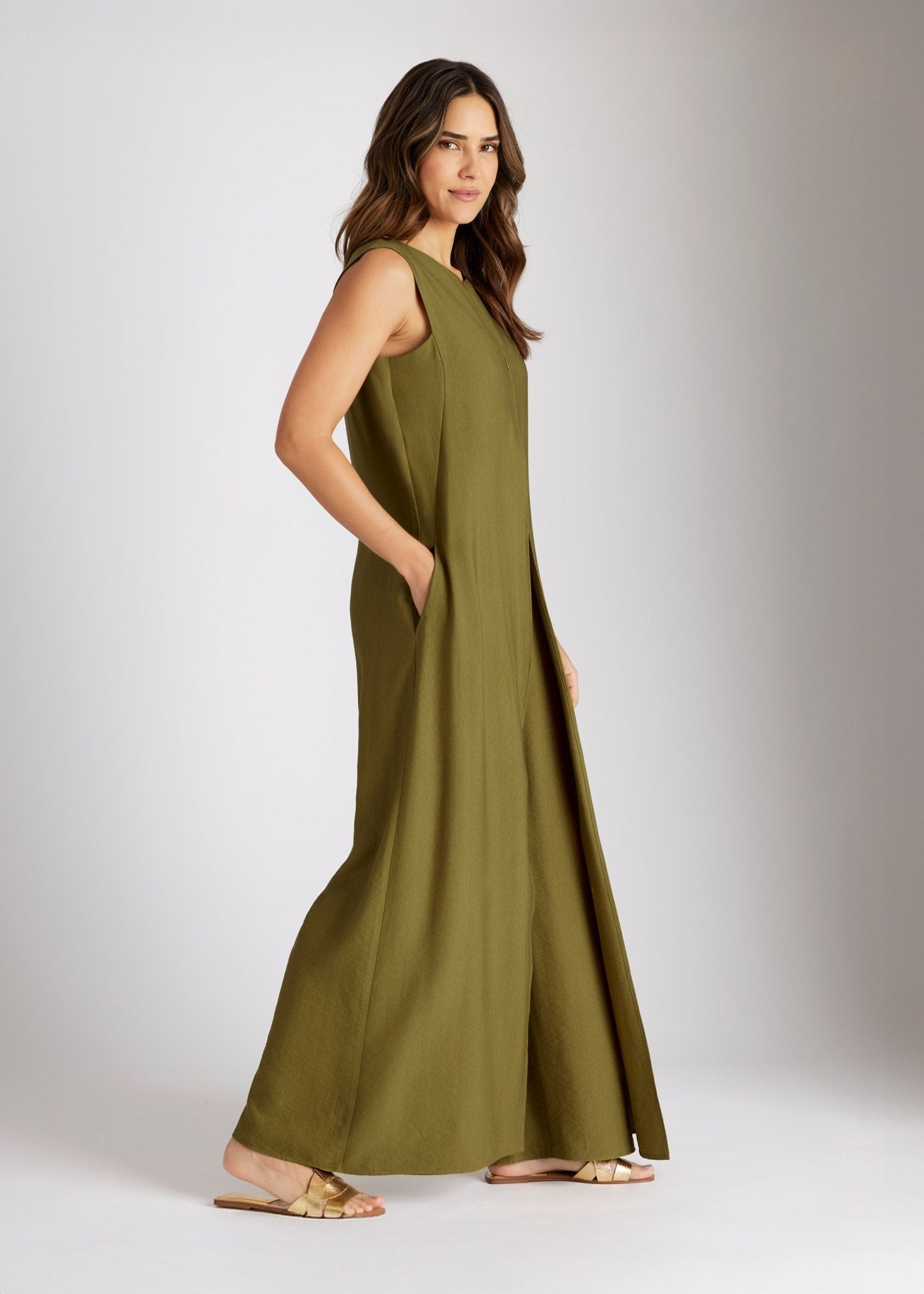Onze mouwloze jumpsuit NUMSUI, gemaakt van getextureerde rayon, is een modieuze must-have die comfort garandeert! Hij maakt indruk met zijn vloeiende, wijde silhouet en biedt uitzonderlijk comfort. De praktische ritssluiting aan de voorkant geeft een coole touch en maakt het gemakkelijk om de jumpsuit aan en uit te trekken.