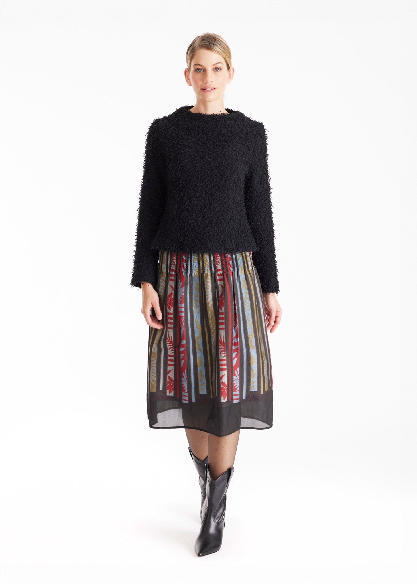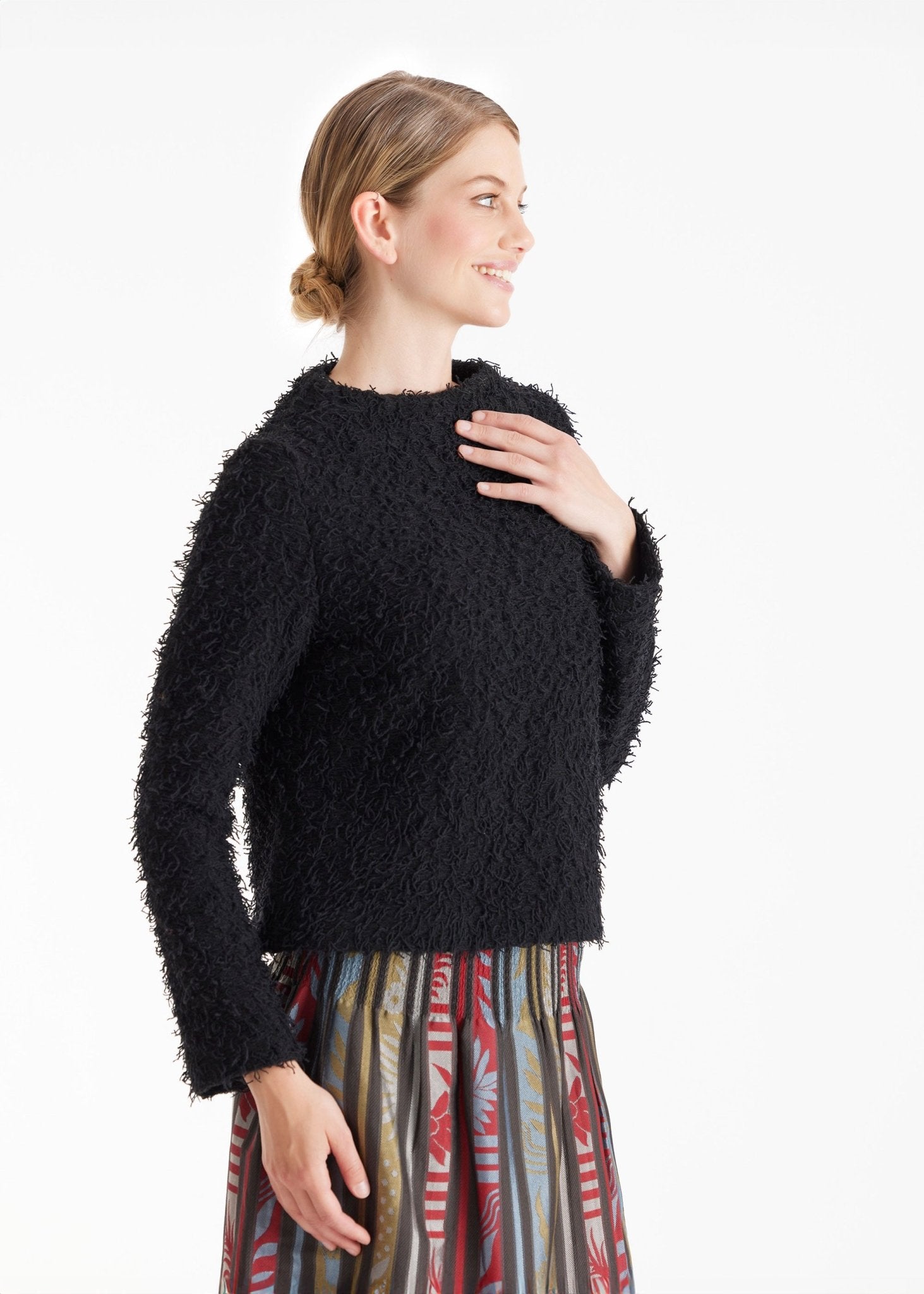 Zacht, stijlvol en een beetje speels: de GADUNI-trui met hoge kraag biedt behaaglijke warmte, terwijl de franjes een speelse textuur toevoegen. De rechte snit zorgt voor een relaxte pasvorm en maakt het mogelijk om de trui moeiteloos te dragen zonder sluitingen. Een trui die niet alleen comfort, maar ook een vleugje charme aan het dagelijks leven toevoegt.
