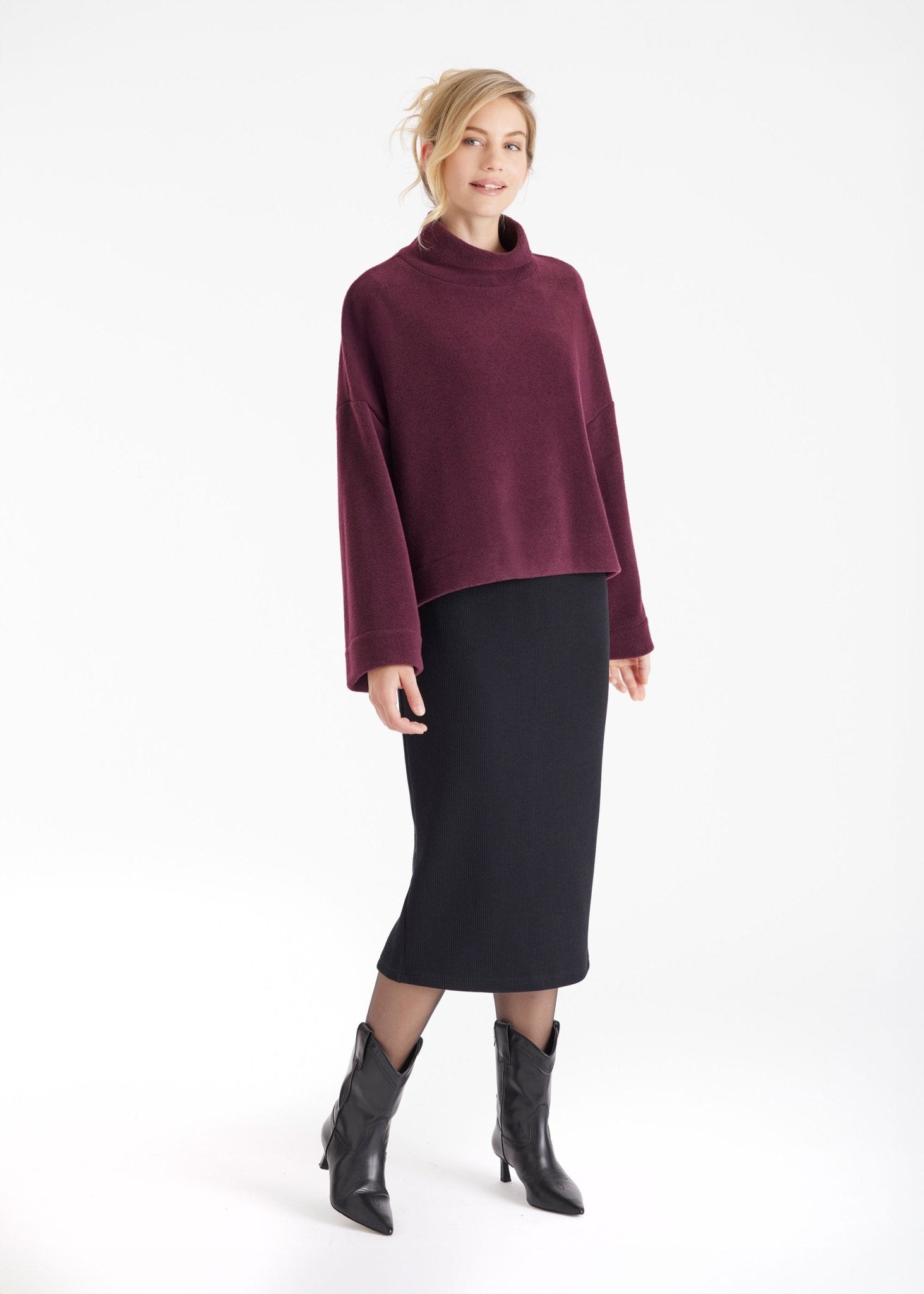 Ruimvallende fleece top SUKATO met opstaande kraag