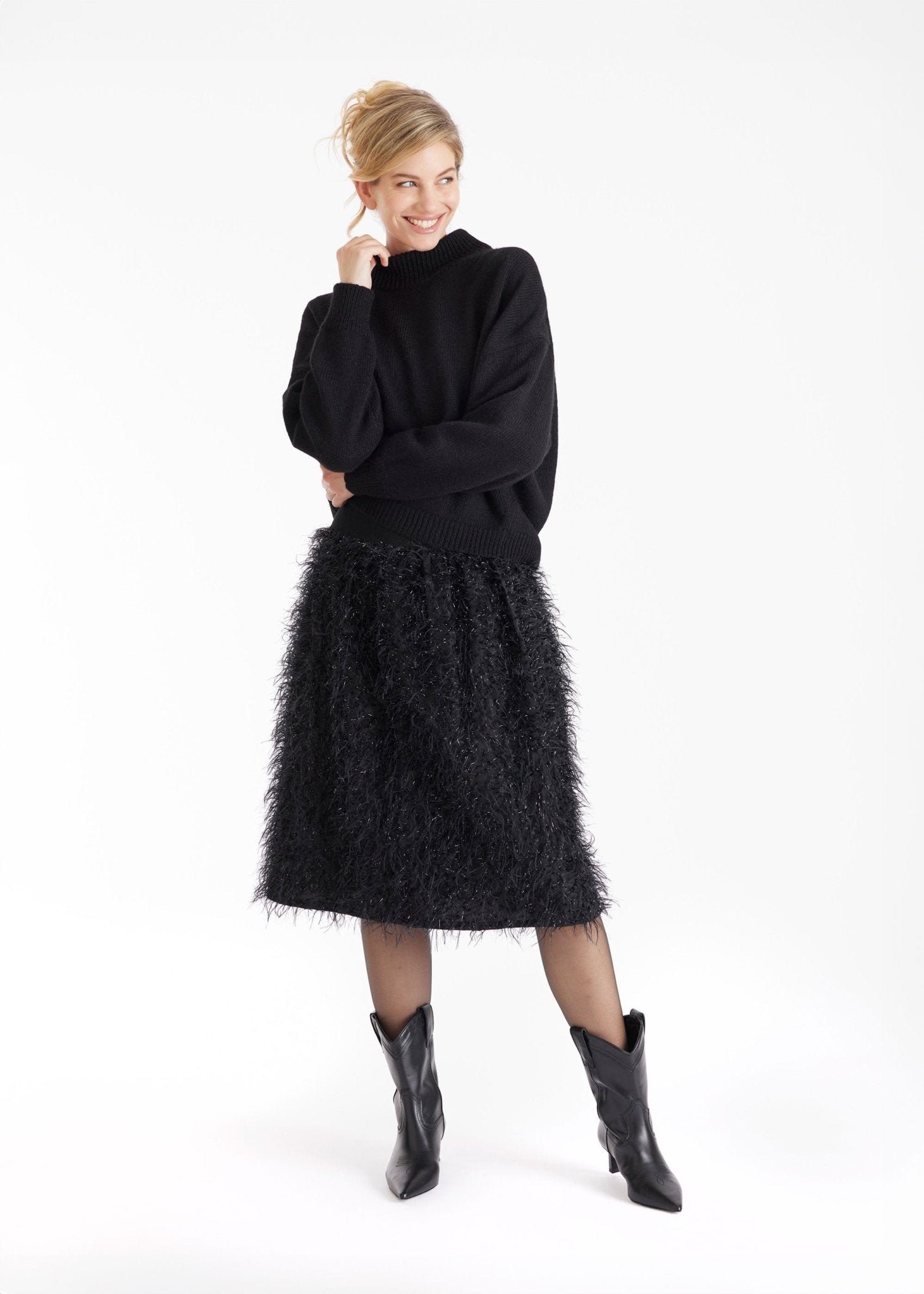 One-size rok van LAFEDRO, gemaakt van een viscosemix, midi-lengte met franjes.