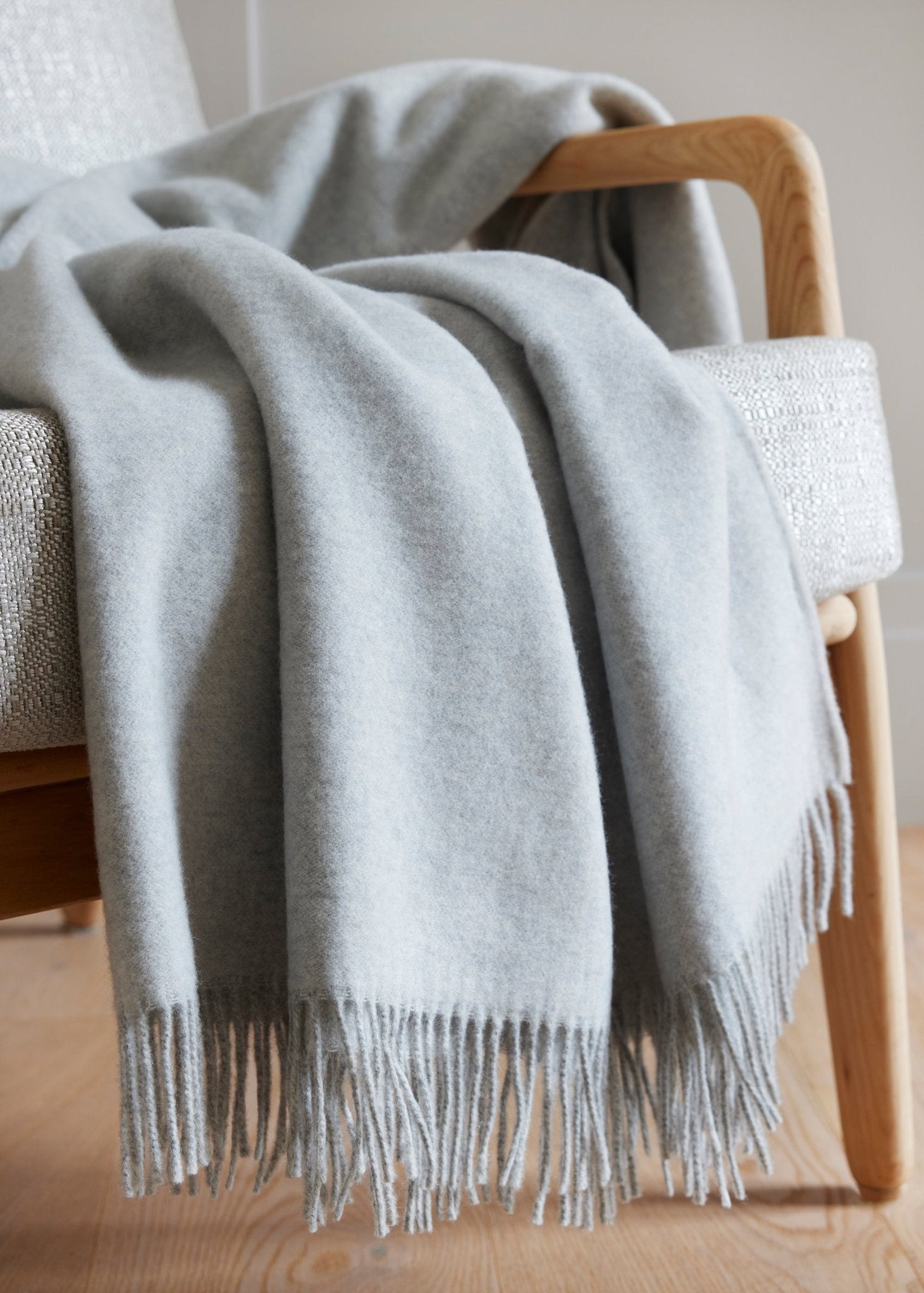 Das federleichte Plaid LANA aus 100 % extrafeiner Schurwolle – wunderbar weich, dünn und angenehm wärmend. Die Doubleface-Optik bringt zwei harmonische Farbseiten ins Spiel (außer bei Farbe Grau), abgerundet durch lässige Fransen für einen lebendigen Look. Perfekt als stylisher Akzent oder kuscheliger Begleiter.